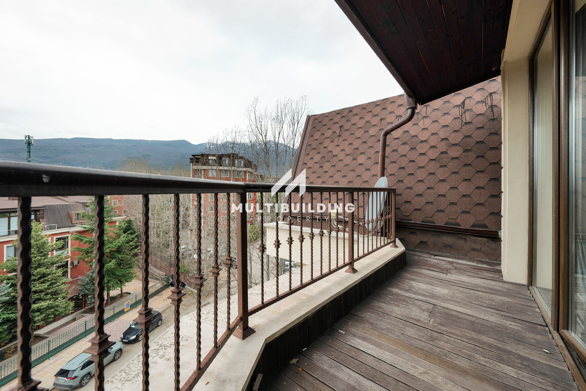 Големите френски прозорци разкриват гледки към "Витоша", превръщайки пейзажа в част от интериора.