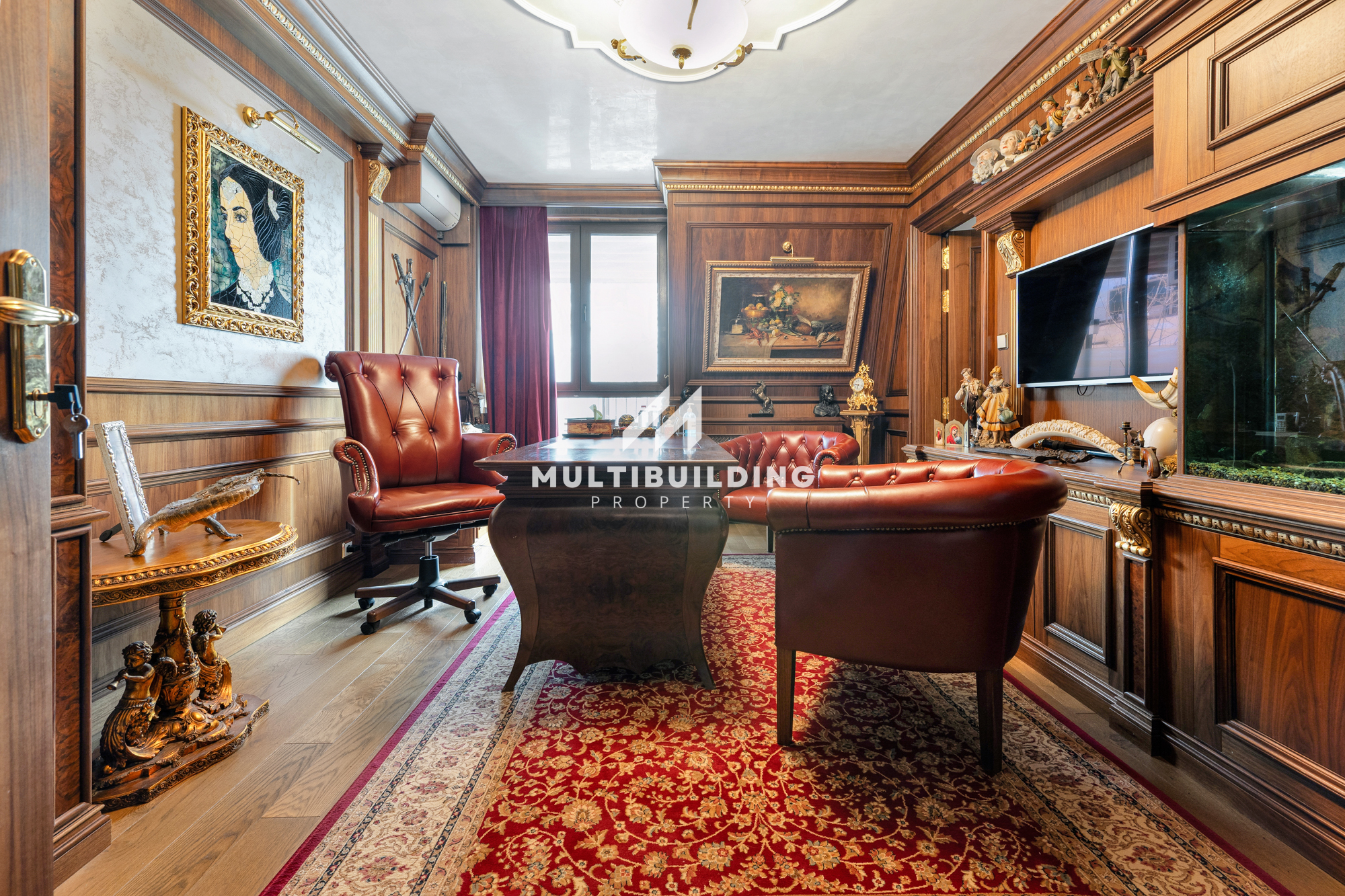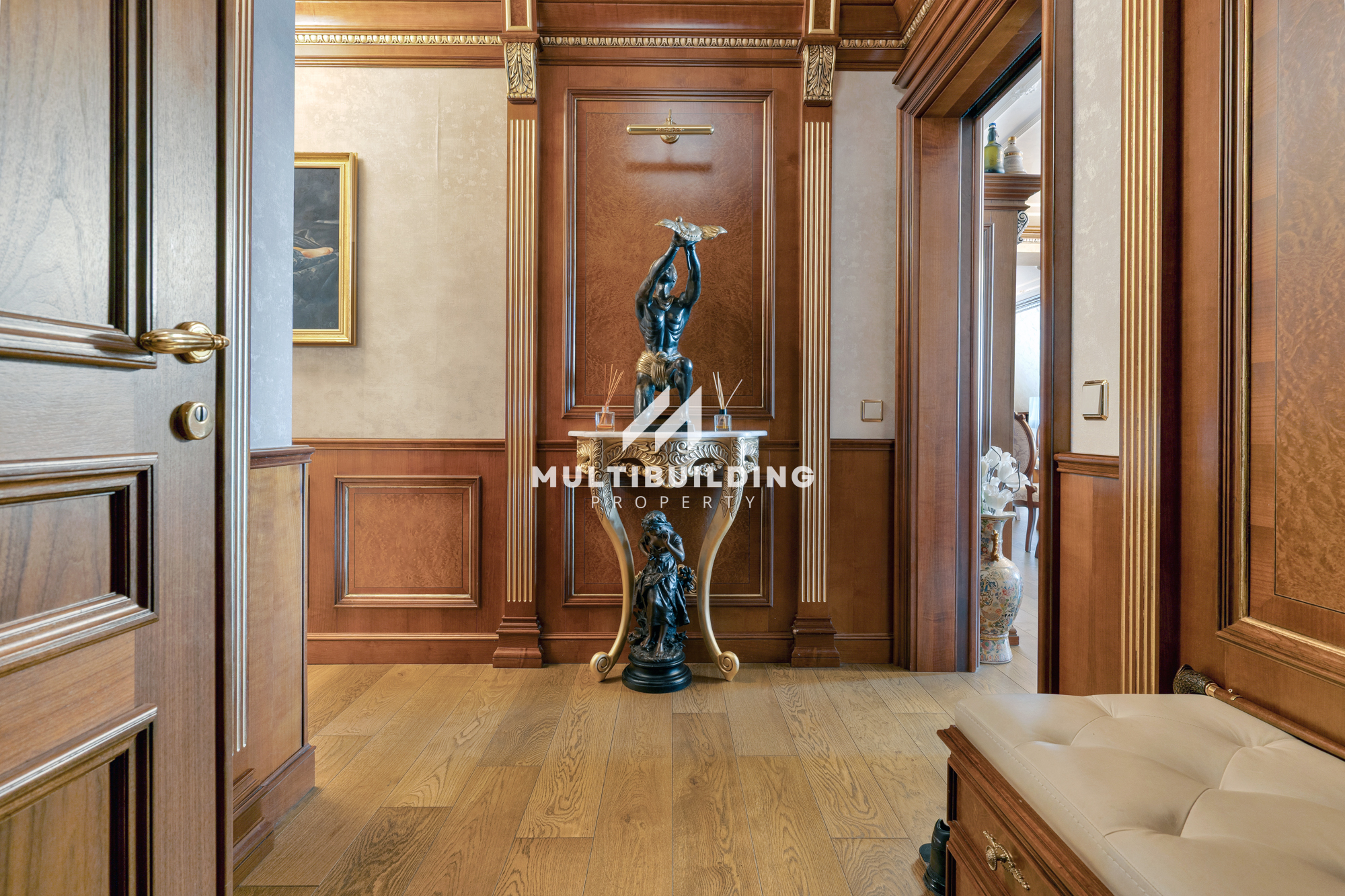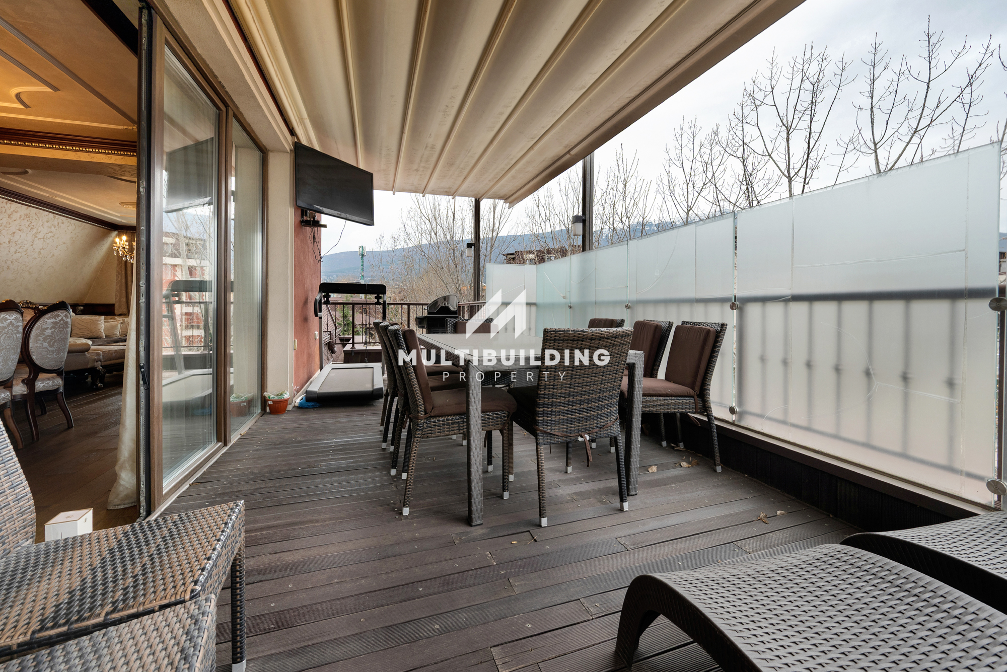 Прилежащата тераса, оборудвана с барбекю и зона за релакс, обикаля целия апартамент.Имотът е идеален за ценителите на класическия европейски стил.
